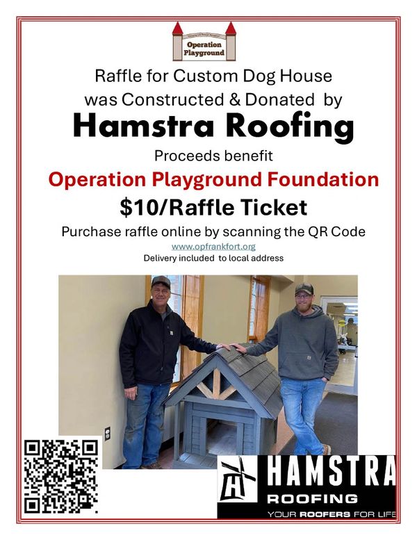 Hamstra Roofing has constructed and donated a custom dog house to be raffled off. Entry tickets $10